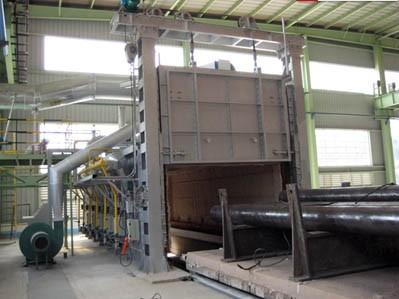臺車式退火爐鋼 結(jié)構(gòu)主要包括爐殼支撐框架和驅(qū)動設(shè)備支撐框架(平臺鋼結(jié)構(gòu))。考慮到爐殼潛在的熱脹冷縮因素,各段爐殼支撐框架與平臺鋼結(jié)構(gòu)采川相互獨立結(jié)構(gòu)。各爐段的底 輥室先安裝就位,以自己四角立柱為基準(zhǔn)完成4個基準(zhǔn)立柱焊接;再焊接左右兩個整體端板.而操作側(cè)和傳..